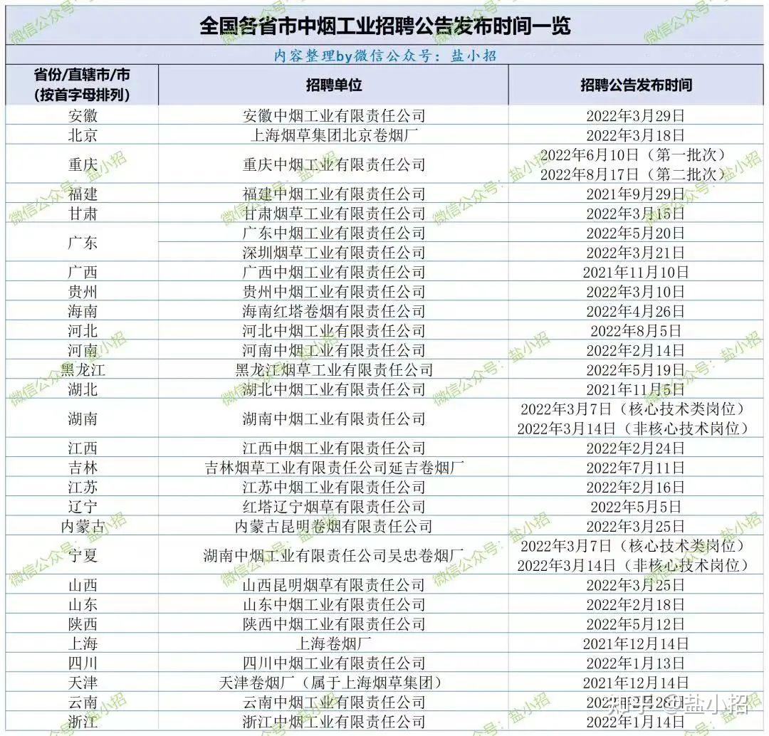 2、2024届各地烟草招聘还没开始,所以同学们可以将22年的招聘公告发布时间作为参考。