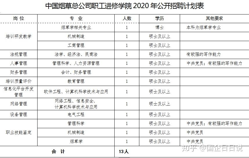 今天中国烟草又招聘了,招聘13人,但是要求有点高!所有的岗位都要求硕士及以上、博士学历,并且部分岗位还有其他的一些要求,为什么这次烟草招聘这么高呢?此次招聘单位是中国烟草总公司职工进修学院,单位好自然要求高。另一方面,招聘的岗位涉及到的工作,也需要这样高学历的人才啦!