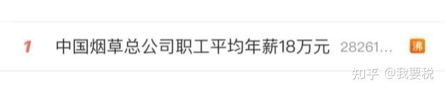 近日,#中国烟草总公司职工平均年薪18万元#话题,冲上微博热搜榜第一!