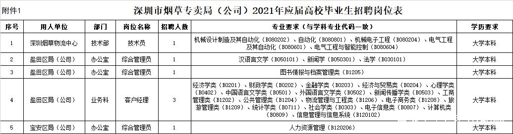 节选深圳烟草专卖局招聘24人公告部分岗位