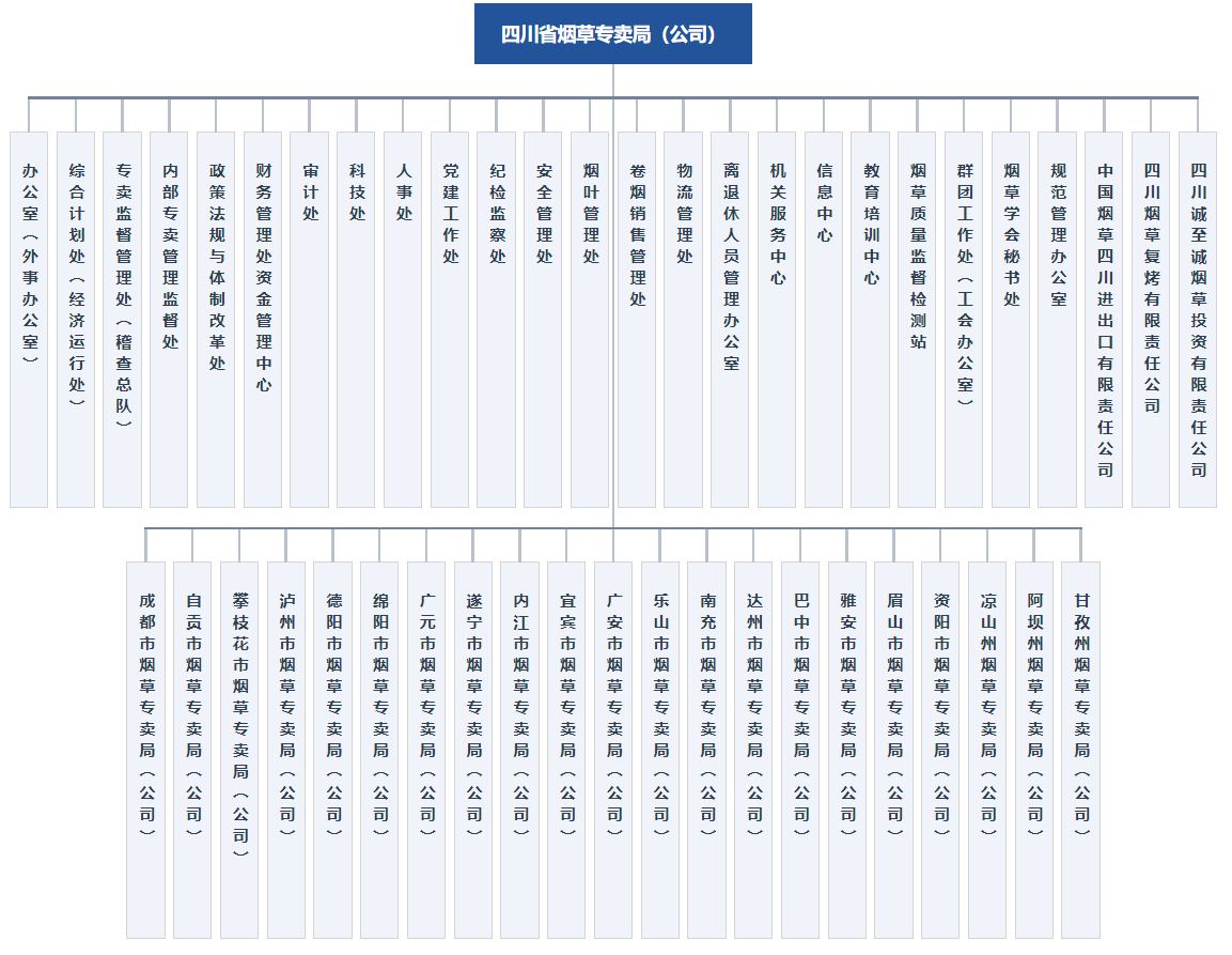 四川省烟草专卖局、中国烟草总公司四川省公司为“一套机构、两块牌子”,肩负行政管理和生产经营“双重职能”。
