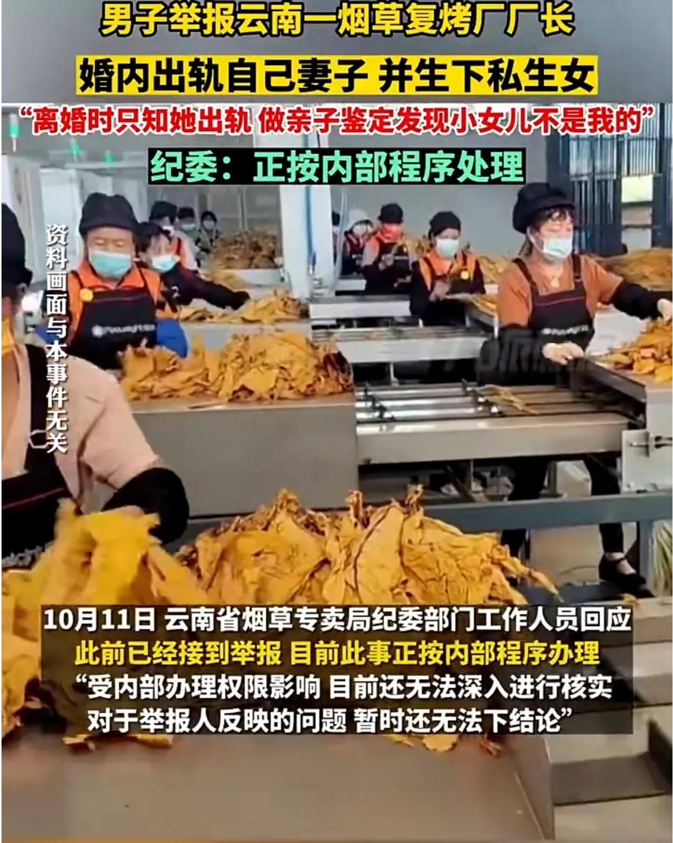 这让人辣眼睛,三观尽毁的一幕就发生在云南烟叶复烤有限责任公司,给男子戴绿帽子的正是厂长张某某。