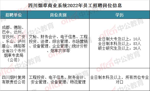 今天,四川中烟工业公司也发布了2026年度员工招聘公告,共计招110人,工作地点在成都、绵阳、什邡、西昌等4地,岗位都是生产操作、专业技术、专业管理类,报考门槛条件也高于烟草商业系统。