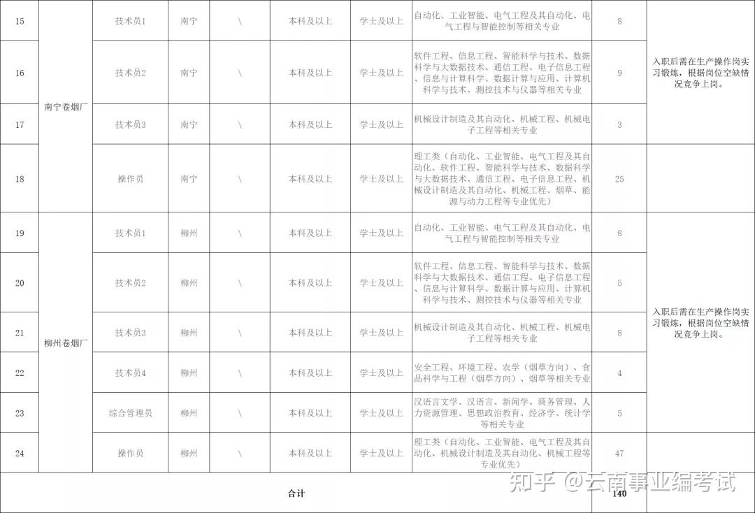 广西中烟2026年公开招聘员工140名,用人单位、需求岗位、招聘专业、人数、要求、入职后安排等信息如下: