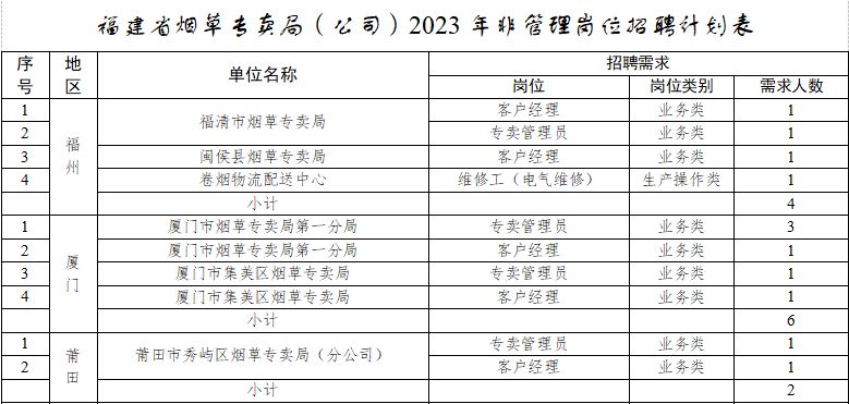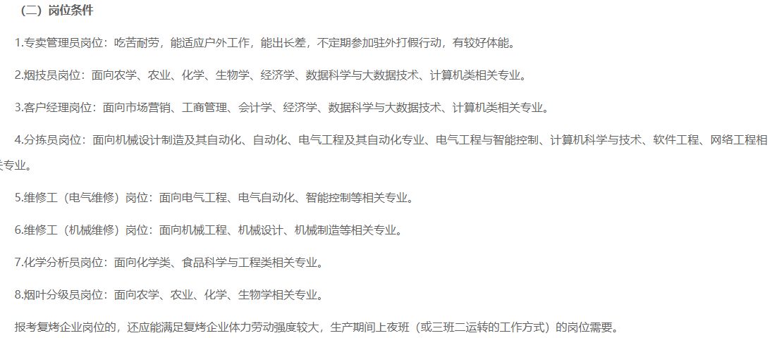 那么中国烟草公司在招聘的时候会以烟草专业或者农学专业的学生为主要招聘对象吗?我们以福建省烟草专卖局(公司)2026年非管理岗位招聘启事为例来分析。烟草专业招聘岗位和对应专业如下: